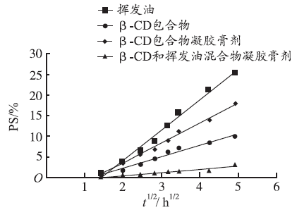 Cumulative penetrative curves of four substances containing volatile oil extracted from