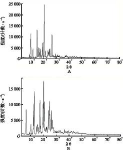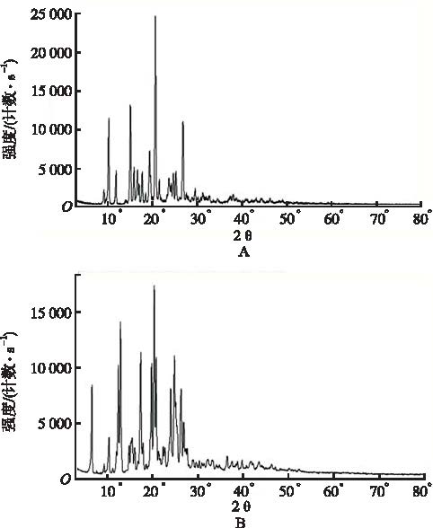 精密称量尼莫地平晶A型和晶B型各50 mg,分别进行粉末X射线衍射分析,实验结果见