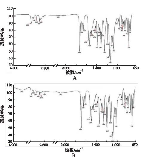 精密称量尼莫地平晶A型和晶B型各5 mg,分别进行红外光谱分析,实验结果见