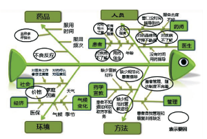 1.2.5 原因解析 运用鱼骨图分析法从药品、人员、环境和方法四个方面分析导致患者用药依从性低的原因(