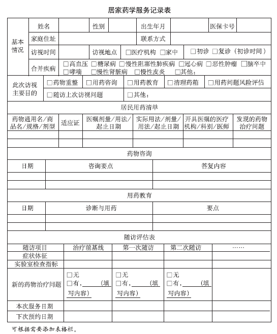 居家药学服务记录表