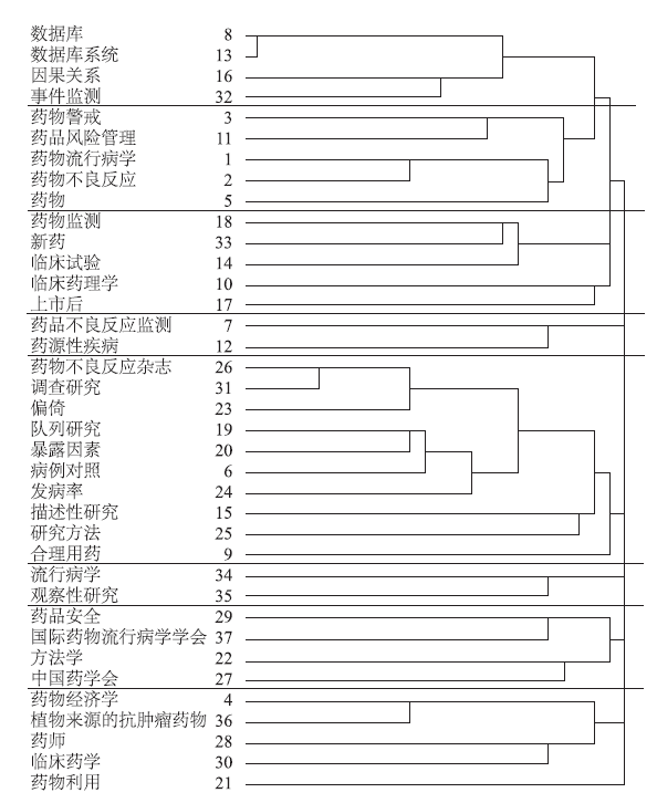 | Fig.2 Co-word clustering tree of Chinese literatures |